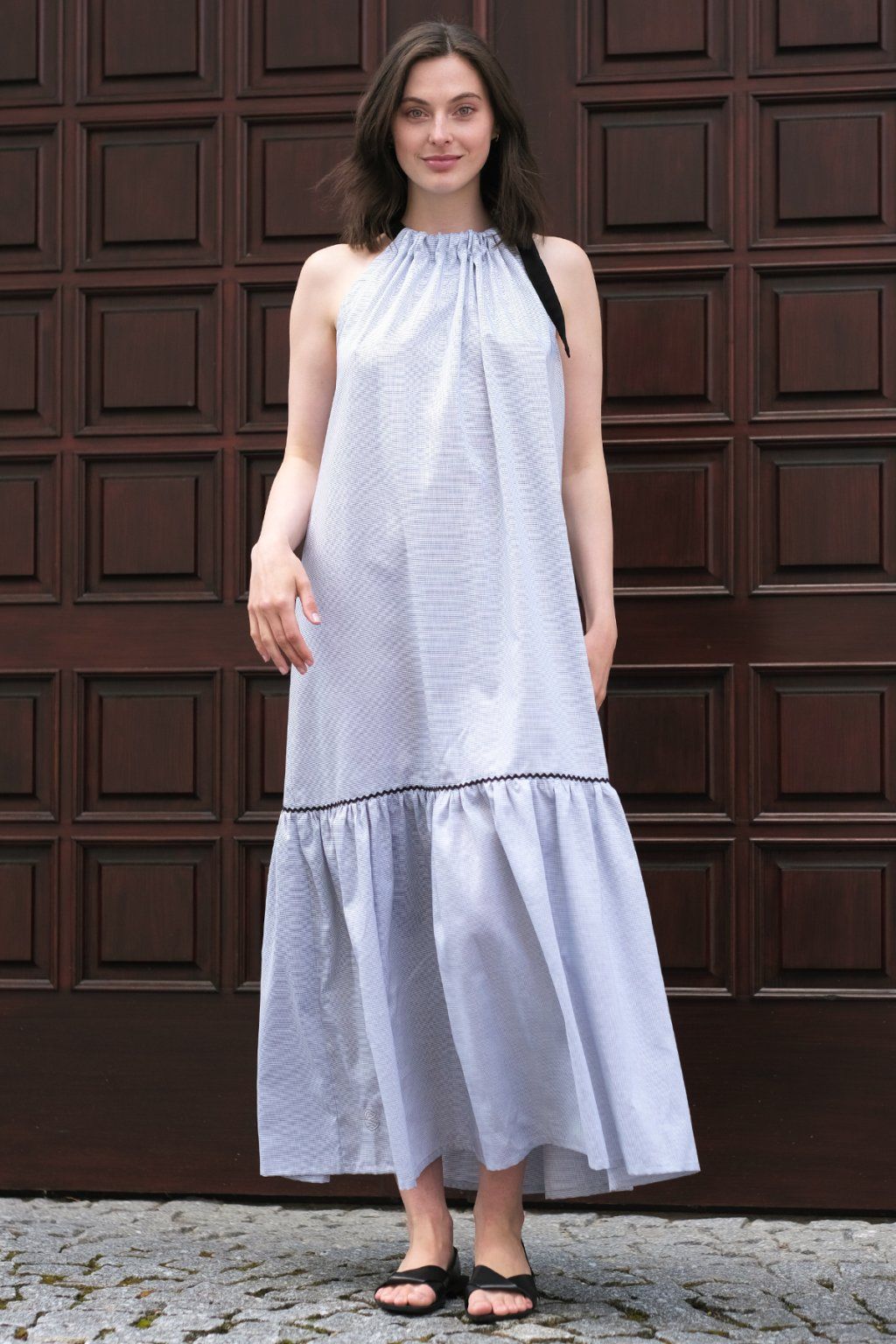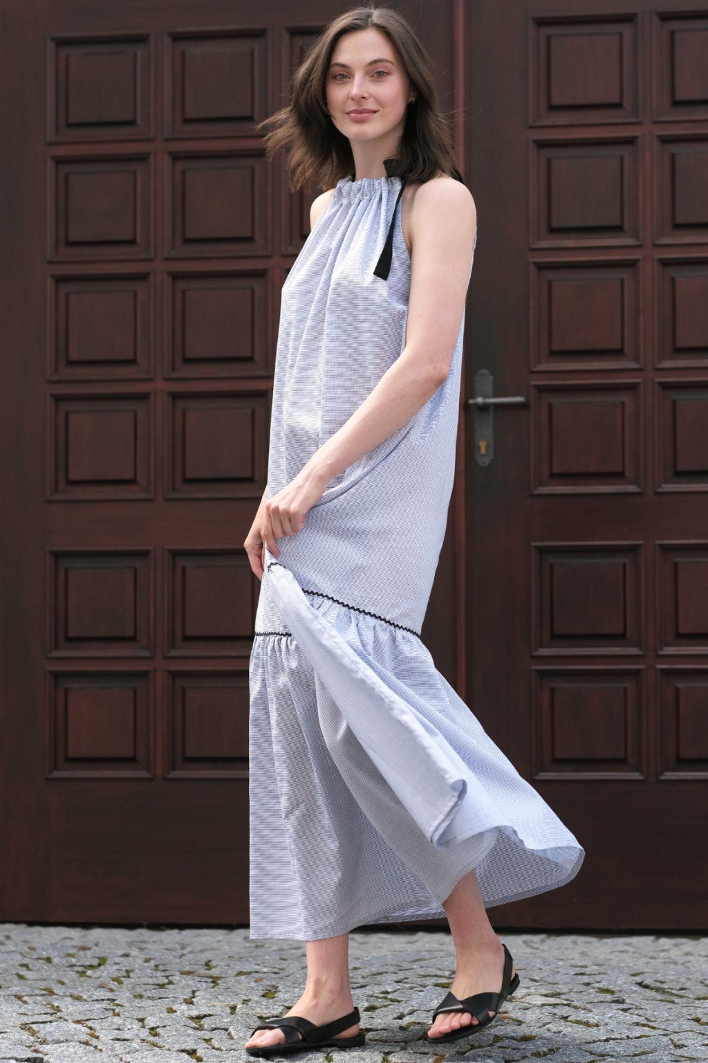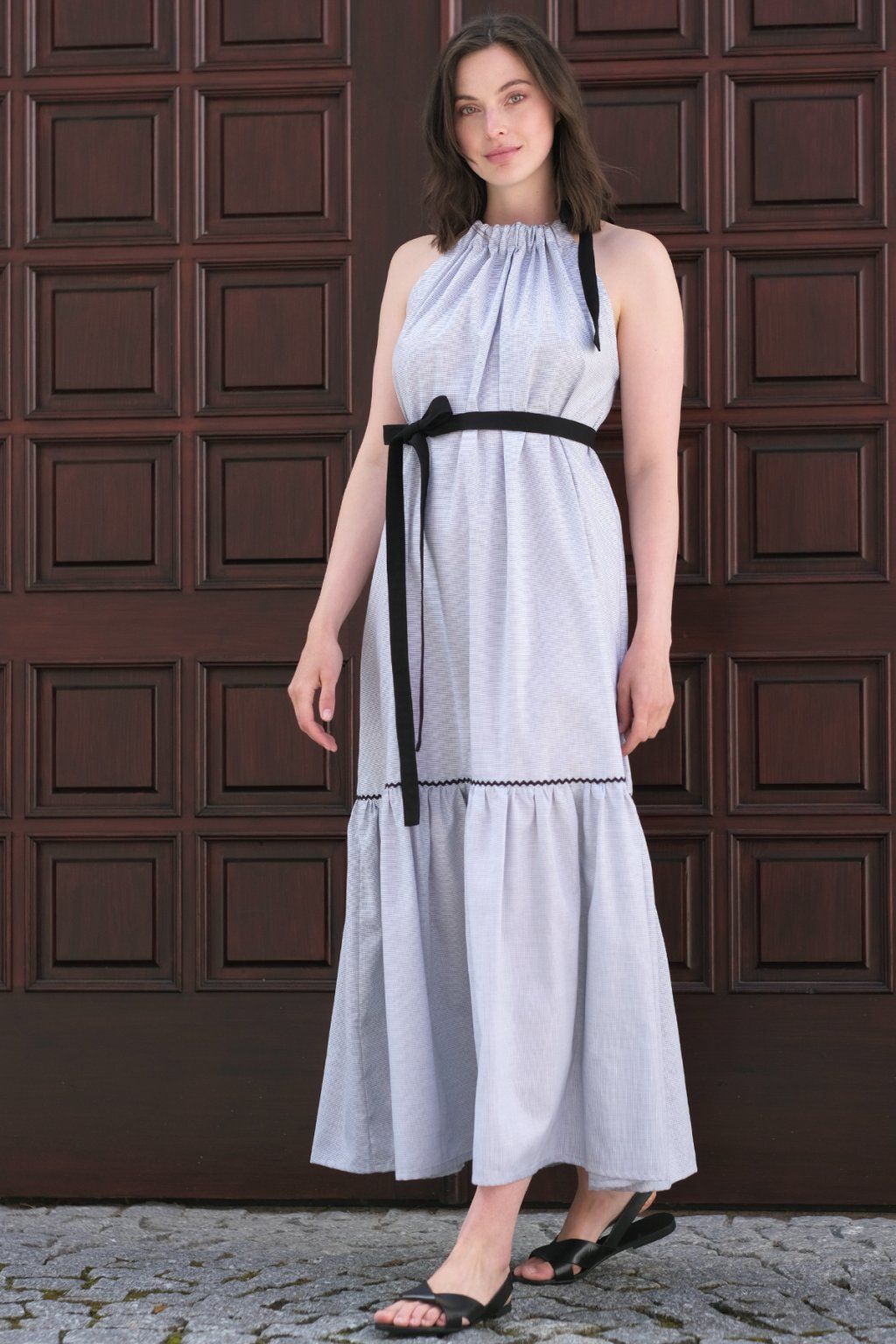 Díky mašli u krku si šaty přizpůsobíte podle vašich potřeb. Tvoří dokonalé spojení s Cirkulo koženým páskem. V chladných dnech si pod šaty oblékněte upnuté tričko nebo rolák.