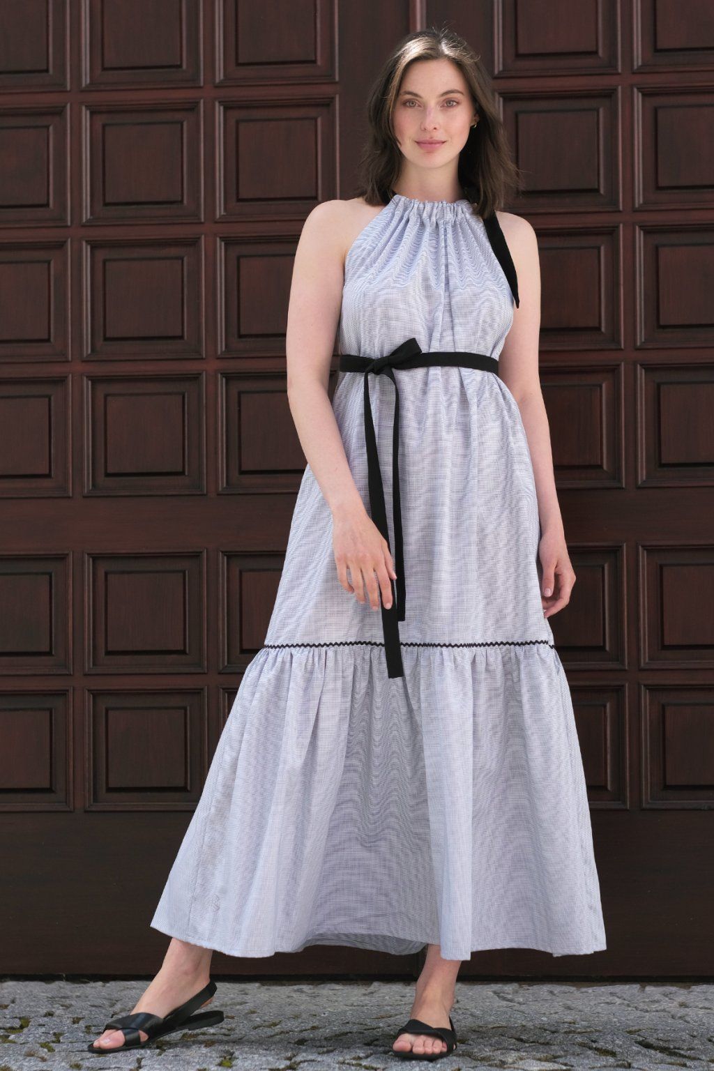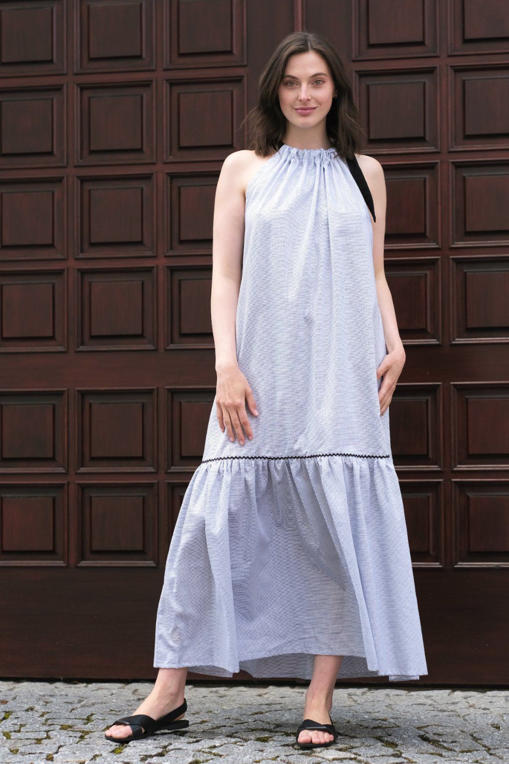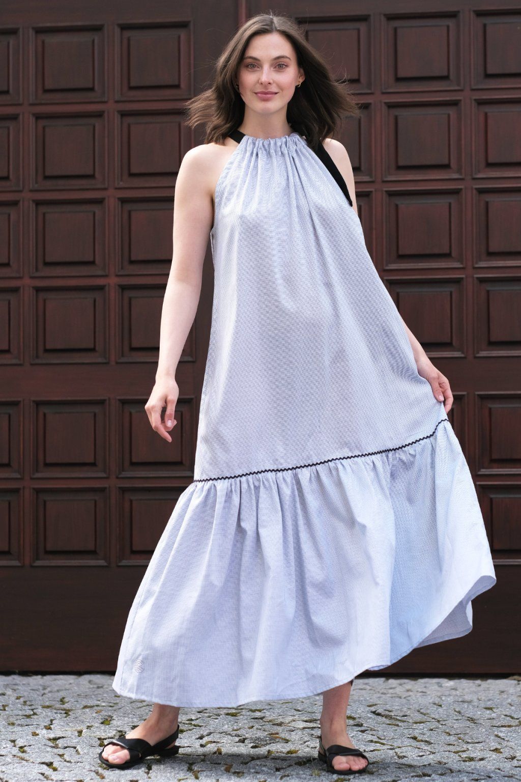 Díky mašli u krku si šaty přizpůsobíte podle vašich potřeb. Tvoří dokonalé spojení s Cirkulo koženým páskem. V chladných dnech si pod šaty oblékněte upnuté tričko nebo rolák.