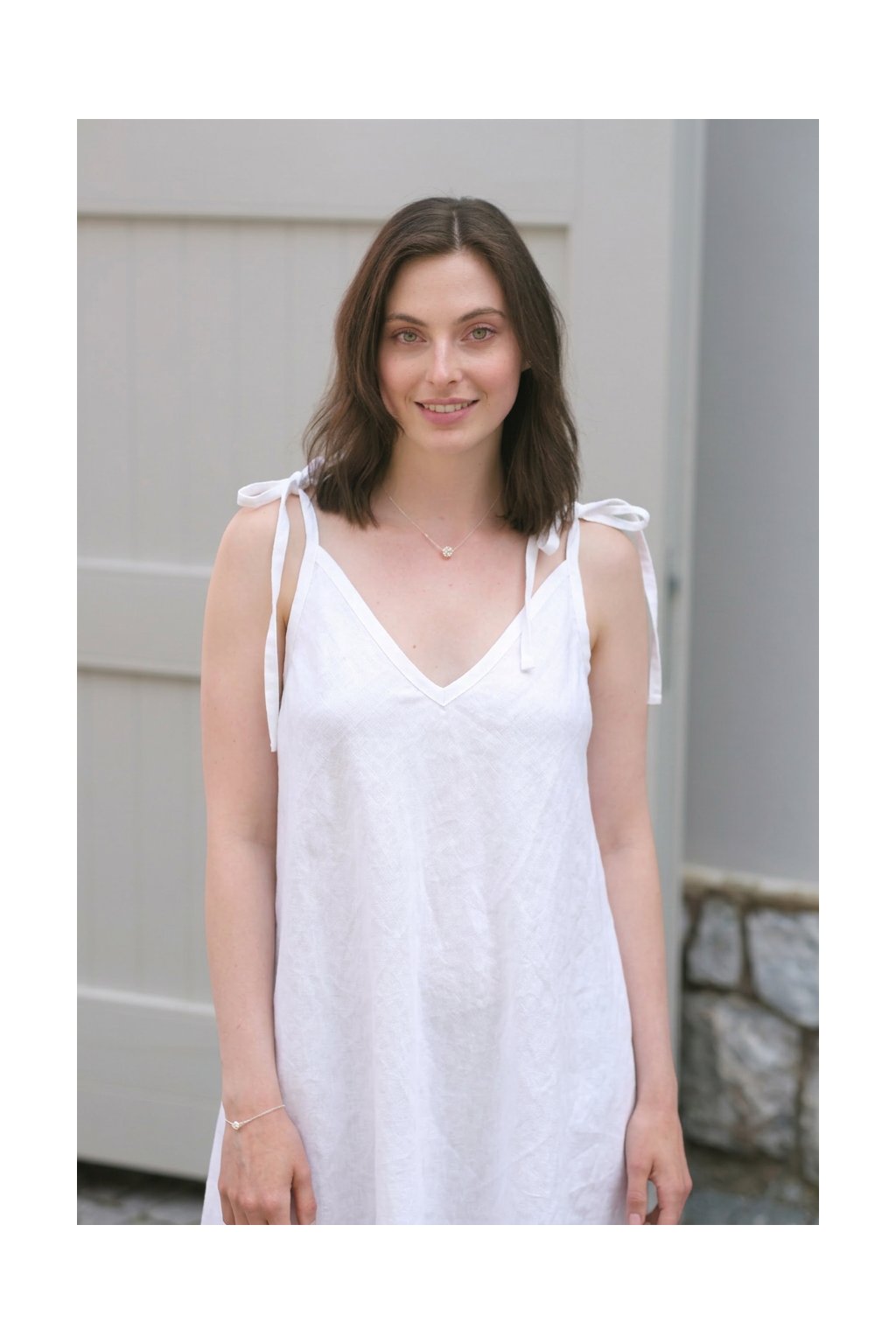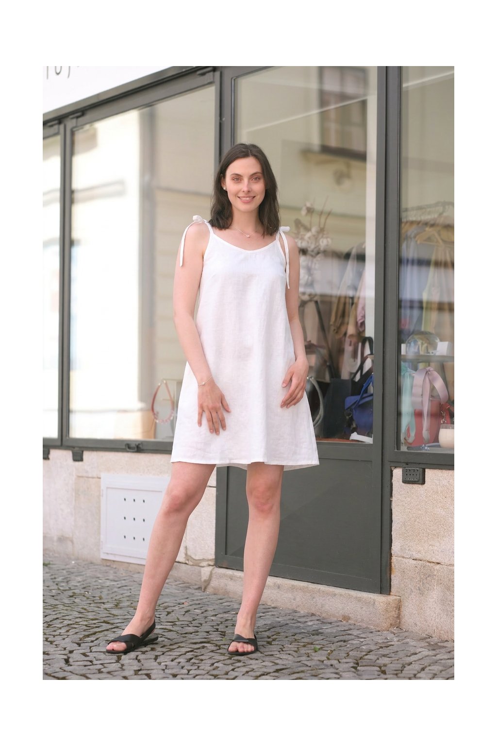 Romantické bílé šaty ze 100% lnu podtrhnou vaši jedinečnou osobnost.